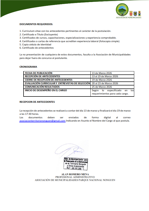 La Asociación de Municipalidades Parque Nacional Nonguén requiere contratar Profesionales para Desarrollar Proyecto Lidera 2025 "Escuela Municipal de Capacitación en Biodiversidad.